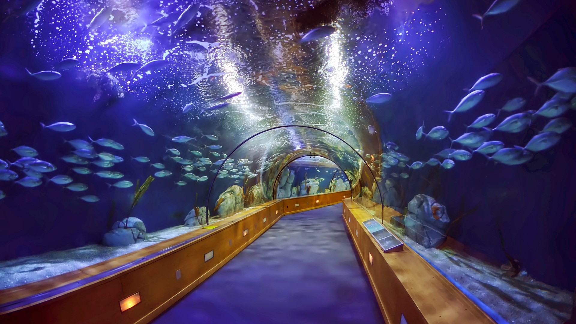 Walk through a 48-meter-long tunnel and gaze in amazement at over 140 species of sea creatures including sharks, rays, and giant groupers swimming above and around you. The aquarium also features a stunning underwater zoo, where visitors can watch penguins, otters, and other aquatic animals in their natural habitats.